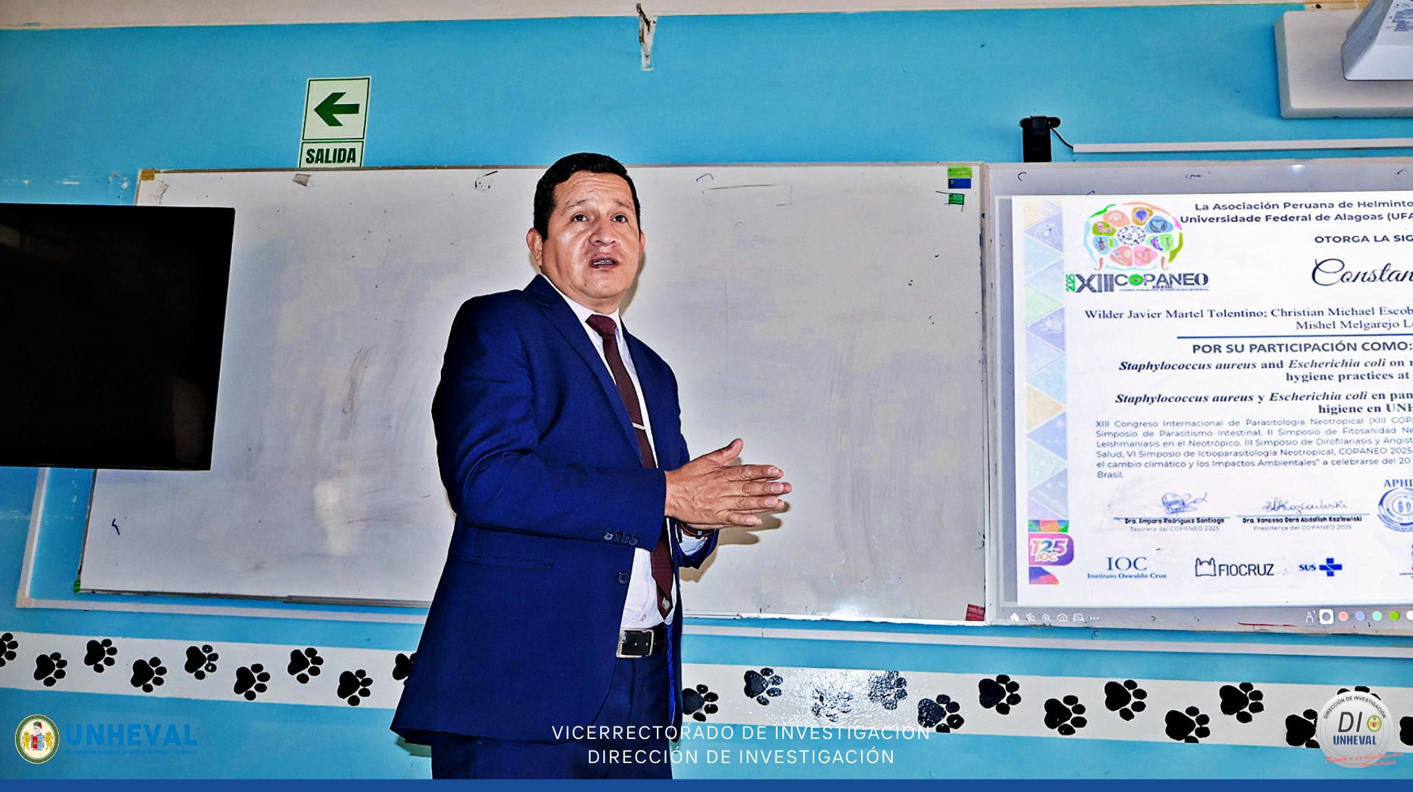 ✅ Durante la jornada, el Dr. Wilder Martel presentó los principales alcances de su participación en el XIII Congreso Internacional de Parasitología Neotropical (COPANEO 2025), evento realizado del 20 al 24 de octubre en Maceió, Alagoas – Brasil.