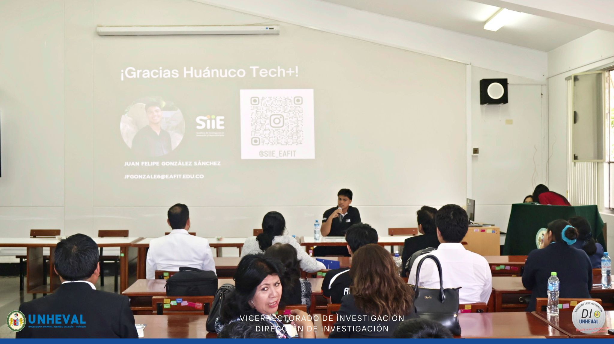 📌 Uno de los momentos más destacados fue la participación especial del Est. Juan Felipe González Sánchez, Líder Semillero de Investigación en Innovación y Emprendimiento (SIIE) de la Universidad EAFIT de Colombia, quien brindó una ponencia internacional inspiradora, resaltando buenas prácticas, metodologías y estrategias para fortalecer los semilleros desde una perspectiva global.