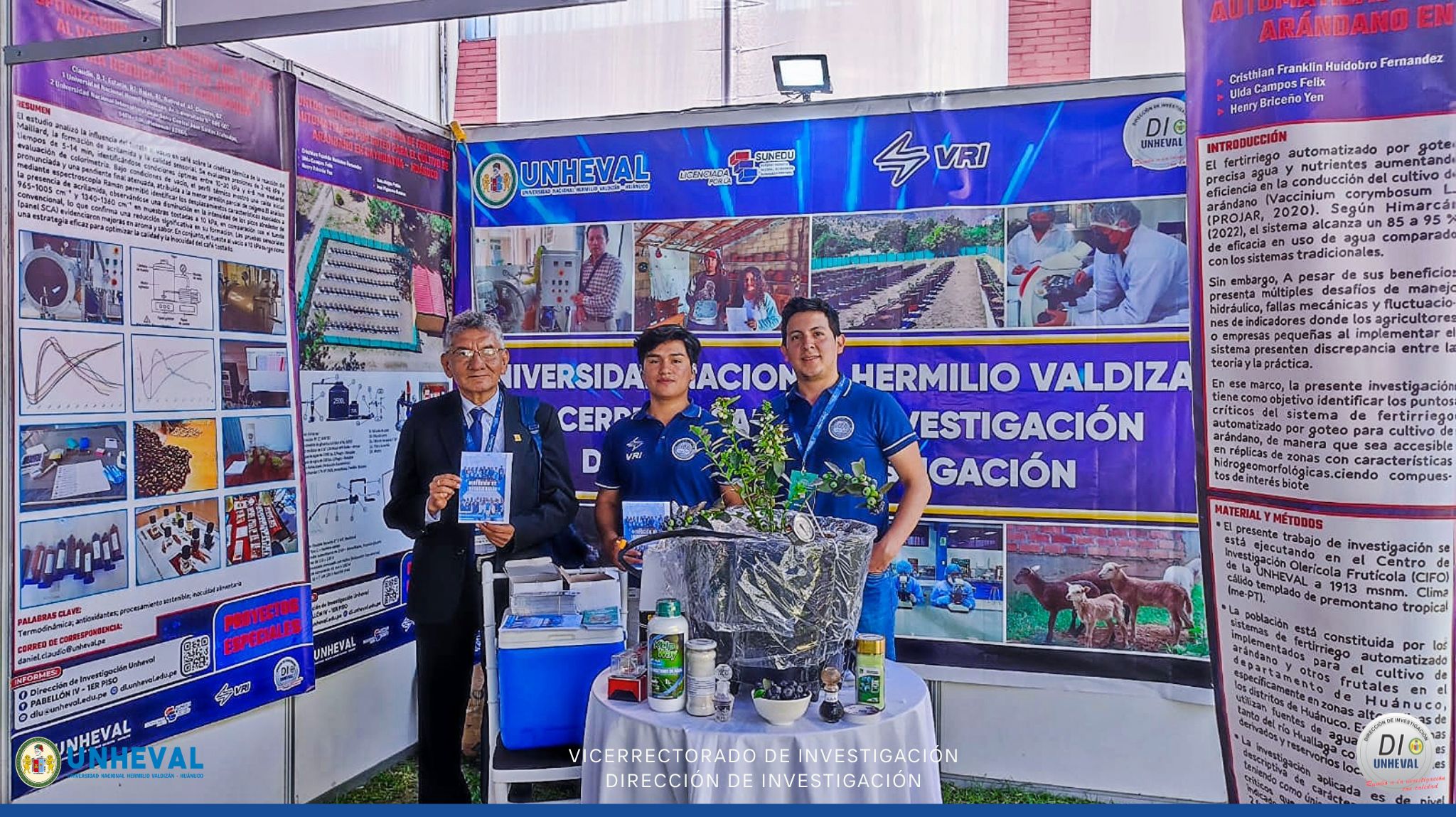 La investigación titulada “Puntos críticos en un sistema de fertirriego automatizado por goteo para el cultivo de arándano en Cayhuayna – Huánuco”, representada por su investigador en formación Cristhian Franklin Huidobro Fernández, estudiante de la Escuela Profesional de Ingeniería Agronómica.